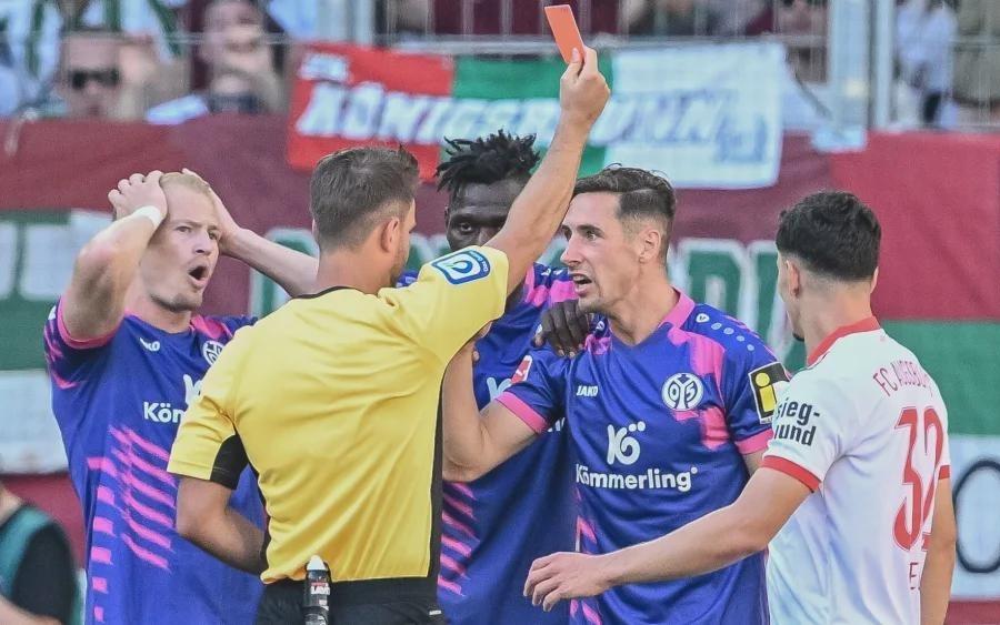 尴尬纪录!美因茨后卫德甲生涯第8次染红,并列联赛第一