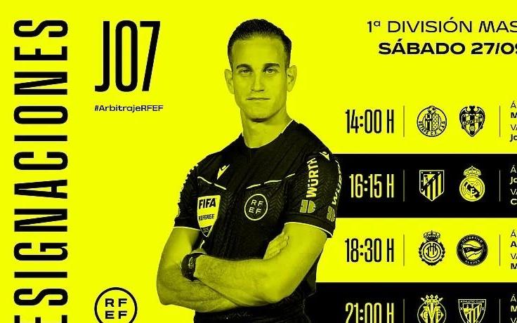 西甲第7轮周六裁判人选:阿尔韦罗拉将执法马德里德比