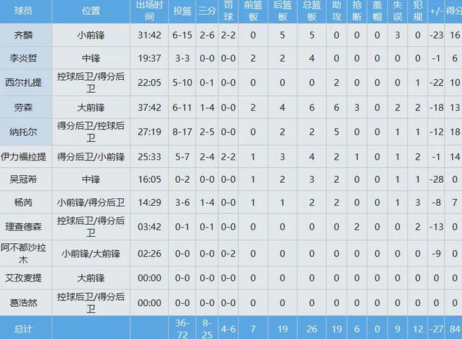 赵睿出战9分钟得到8分1板助1断,周琦上阵22分钟贡献15分9板,两人联手帮助北京队111-84大胜他们的老东家。