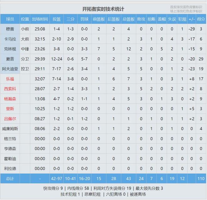 杨瀚森被下放之前,已经连续6场比赛被DNP(非伤病原因不能出场),在开拓者沦为第四中锋,排在克林根、罗威和里斯之后。今天这场比赛,克林根打了23分26秒,杨瀚森打了13分08秒,里斯打了10分25秒,罗威打了8分06秒。