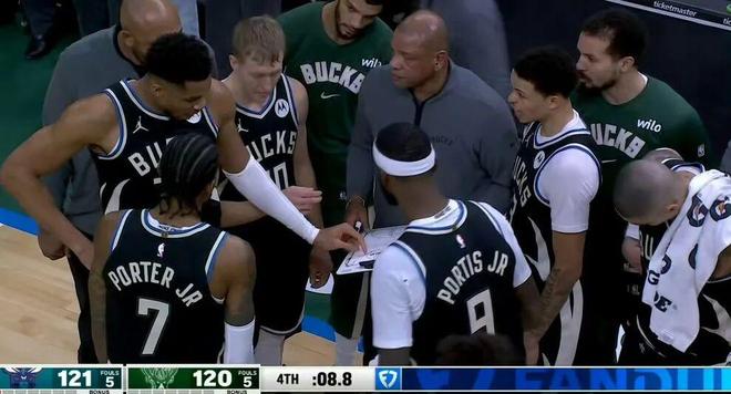 ——字母哥接罗林斯传球空接,雄鹿落后2分