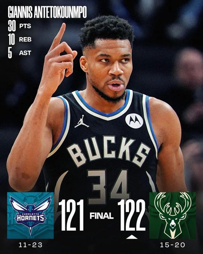 虽说对手是黄蜂,但是这场雄鹿赢得非常不容易,第二节一度落后16分,下半场全程胶着,且大部分时间里雄鹿都是落后的一方。