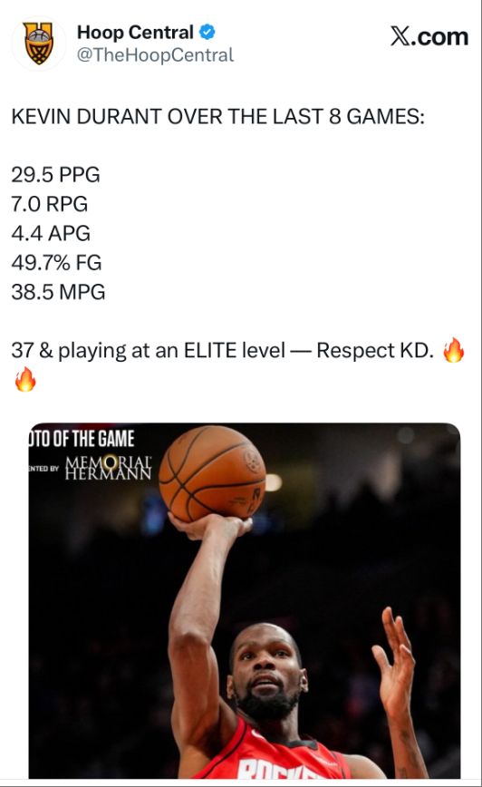 休媒:37岁的杜兰特就是联盟历史最伟大的球员之一。