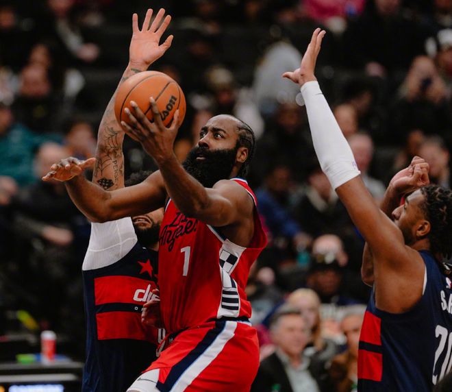 正处于五连胜的快船,这一个比赛日,远赴华盛顿挑战东部鱼腩奇才,本场比赛哈登在莱昂纳德因伤无法出战的情况下,扛起了球队的进攻大旗,率领残阵快船以110-106险胜奇才,豪取六连胜超越孟菲斯灰熊,将自己的排名提升到了西部第十,成功跻身附加赛区。