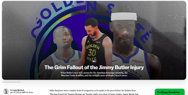 甚至库里也因为如今糟糕的局面陷入交易流言之中,《cbssports》的Sam Quinn更是坦言勇士队在巴特勒报销后球队未来调整空间被锁死,如果库里想要争冠,离开是最好的选择。