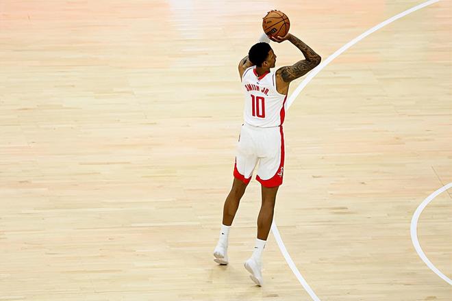 本场比赛中,火箭的先发大前锋小贾巴里-史密斯(Jabari Smith Jr.)的表现也算是有所回暖了。史密斯全场出场37分01秒,投篮9中5,三分线外3中1,得到了11分10篮板3助攻2抢断2盖帽的两双数据,其中还包括了3个前场篮板,还有2次失误和4次犯规,正负值为-1。史密斯在进攻端的表现算是马马虎虎,得分能力和投射能力依然没有充分发挥出来,也没有什么其他方面的表现,在进攻端的贡献度依然非常有限。不过史密斯在防守端好歹是强硬了一些的,他也是能够利用自己不俗的身体天赋在防守端起到作用的。虽然史密斯的整体表现依然不算是特别理想,与大家对他的预期依然有一定的差距,但是好歹他也没有给球队造成什么太大的麻烦,这一点也是值得肯定的。