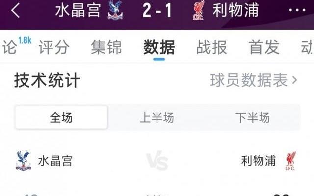 利物浦12水晶宫全场数据:射门2016,射正47,得分机会67