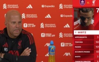 斯洛特:维尔茨表现甚至好过预期缺少三四名首发球员不是借口