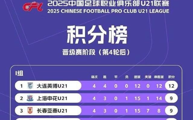 U21联赛晋级赛积分榜:大连英博居I组榜首浙江队居J组第一