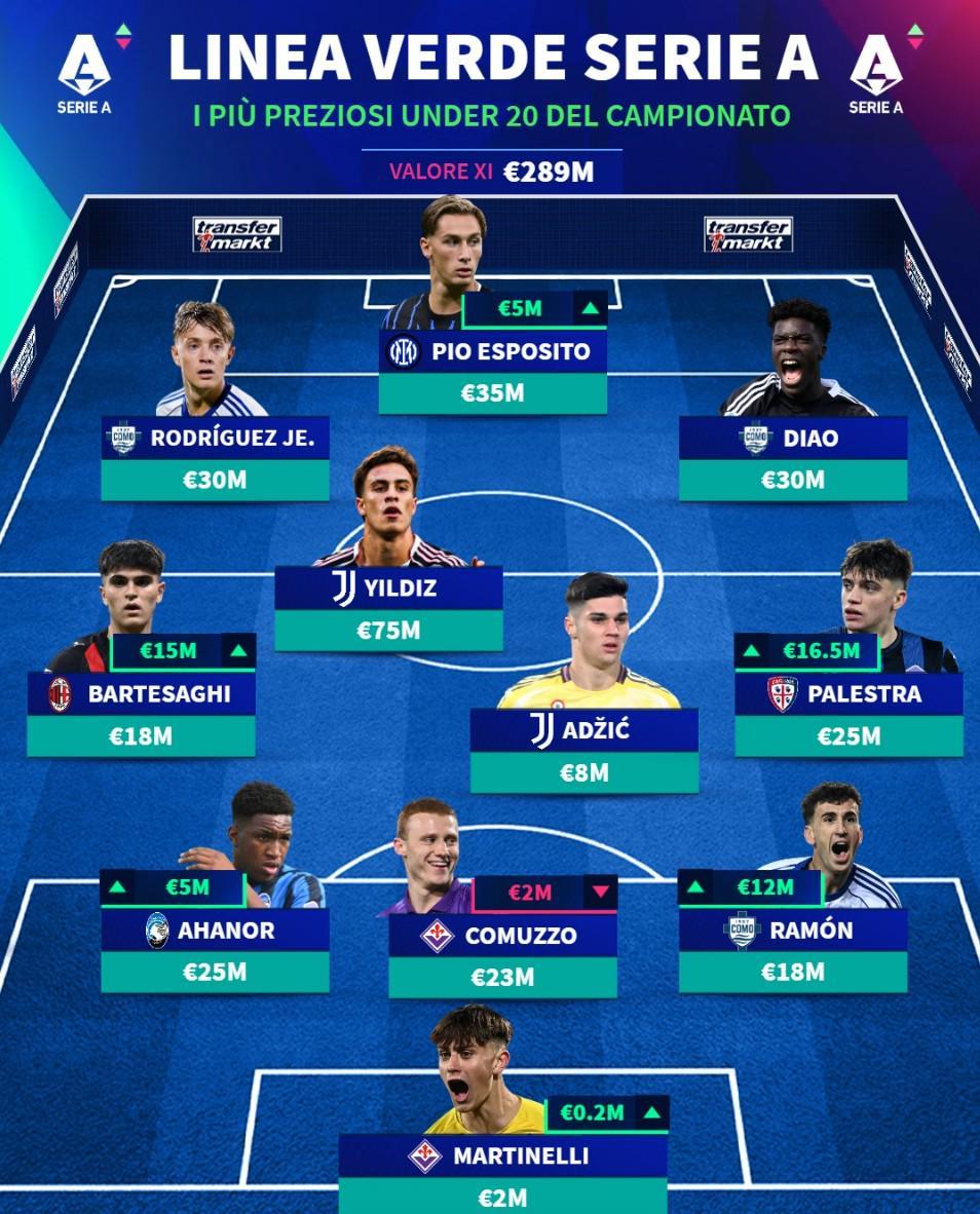 德转列意甲U20最佳11人:伊尔迪兹领衔,皮奥、巴尔泰萨吉入选