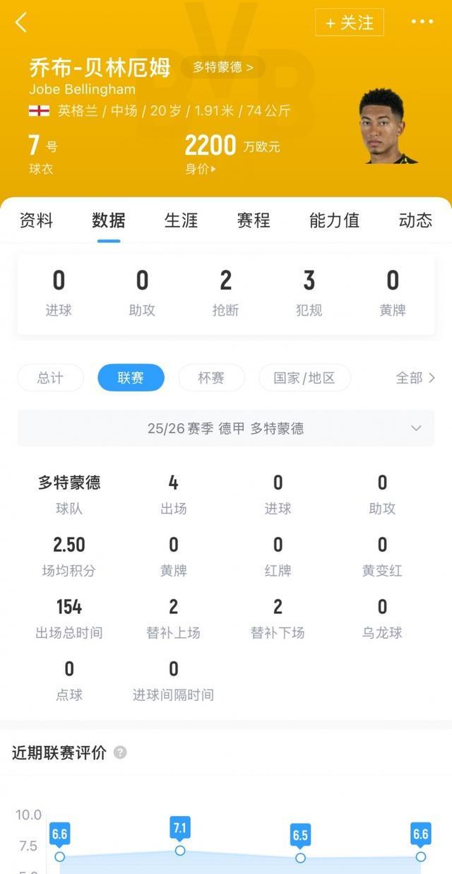 而据此前《图片报》报道,小贝林父亲曾不满球队打法+儿子被换下,与多特总监凯尔发生争吵。而如今这名20岁的英格兰中场已经连续三场比赛没有首发。此外,小贝林赛季至今6场0球0助,包括4轮德甲、一场德国杯以及一场欧冠。