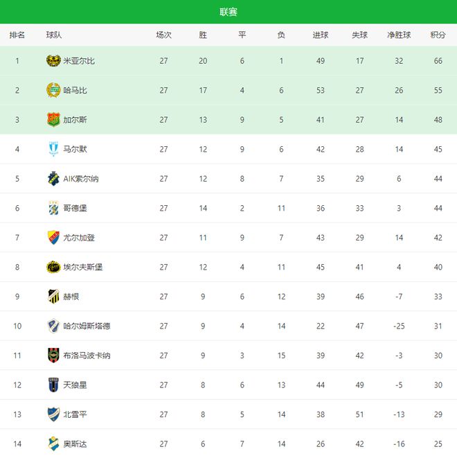 在比赛前,米亚尔比积63分,领先排名第二的哈马比8分,联赛还剩下4轮,只要本轮全取3分的话,那么将提前3轮夺冠,最终在主教练托尔斯滕松全取3分,如愿夺冠,并创造了瑞典足球百年历史上最不可思议的一幕,这妥妥的就是莱斯特城奇迹再现的存在啊。