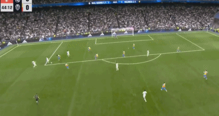 第42分钟,禁区线停球直塞,维尼修斯突破被阿吉雷萨瓦拉出击化解,阿尔瓦罗二点持球被雷克尼放倒在地,主裁判再次判罚了点球;这次换成了维尼修斯主罚,但巴西边锋的主罚被阿吉雷萨瓦拉神勇扑出,居莱尔跟进的补射同样被阿吉雷萨瓦拉扑出。既然点球不进那就换个方式,第44分钟,贝林厄姆换到左路内切轰出远射,这次阿吉雷萨瓦拉鞭长莫及,3:0!在伤愈复出之后,贝林厄姆已经是连续3场比赛收获进球了。