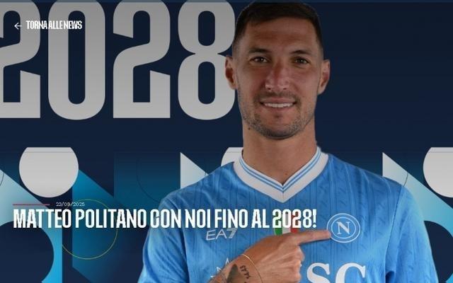 身价1000万欧!官方:那不勒斯与32岁前锋波利塔诺续约至2028年