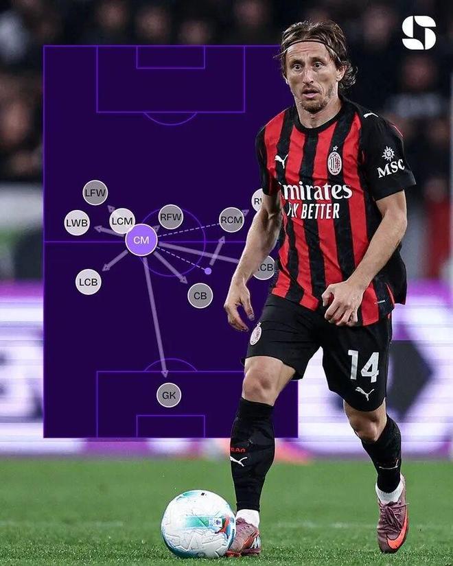据OPTA统计,40岁的米兰中场莫德里奇本赛季在意甲联赛中,以368次成功传球的数据高居所有球员之首。