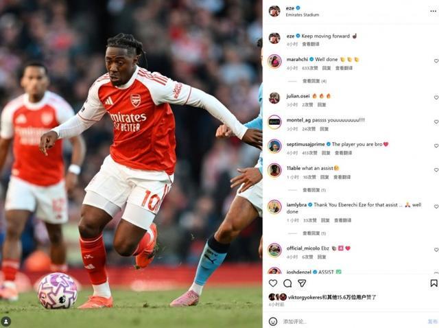 赛后埃泽也在个人社媒晒出本场照片,配文写道:“我们继续前进!”