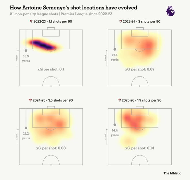 在不久的将来,25岁塞门约将不可避免地加盟一家英超强队。但那是不是最佳选择,可能很难预测。他的特点最适合伯恩茅斯的打法,自从伊劳拉执教以来,只有利物浦的快攻射门次数超过「樱桃军团」,而塞门约非常擅长使用自己左右开弓的优点进行快速进攻,趁对手防守混乱之际制造威胁。数据显示,本赛季没有球员比塞门约在反击中进更多的球。