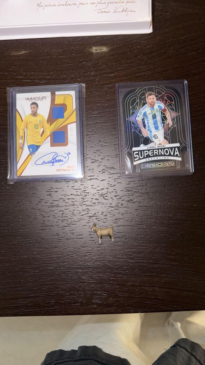 可以看到,两张卡是梅西与内马尔的国家队版本,两人均穿着国家队10号球衣。